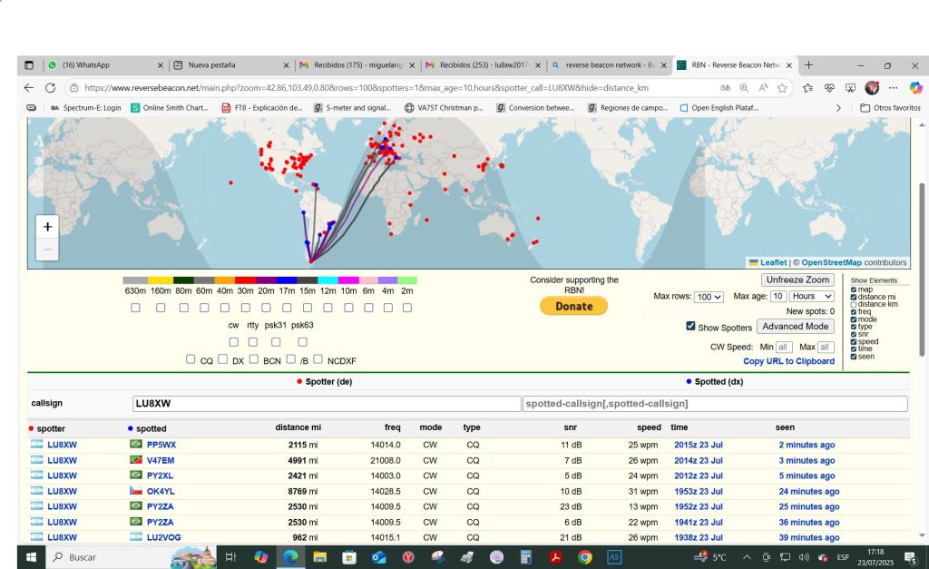 SEÑALES DE CW ESCUCHADAS EN EL RADIO CLUB USHUAIA LU8XW EN EL REVERSE BEACON NETWORK